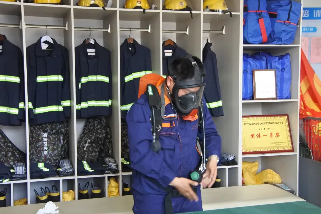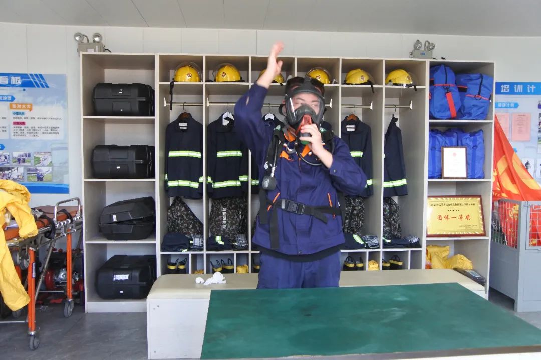 在考核現場,員工們有條不紊地對空氣呼吸器進行全面檢查,從背起呼吸器、拉緊肩帶,到精確調整面罩,再到細致試驗有無漏氣現象,步驟準確無誤,動作規范流暢。此次考核不僅深化了員工對空氣呼吸器的理解,更提升了我公司員工在應對突發情況時的應急反應速度和自救互救能力。
