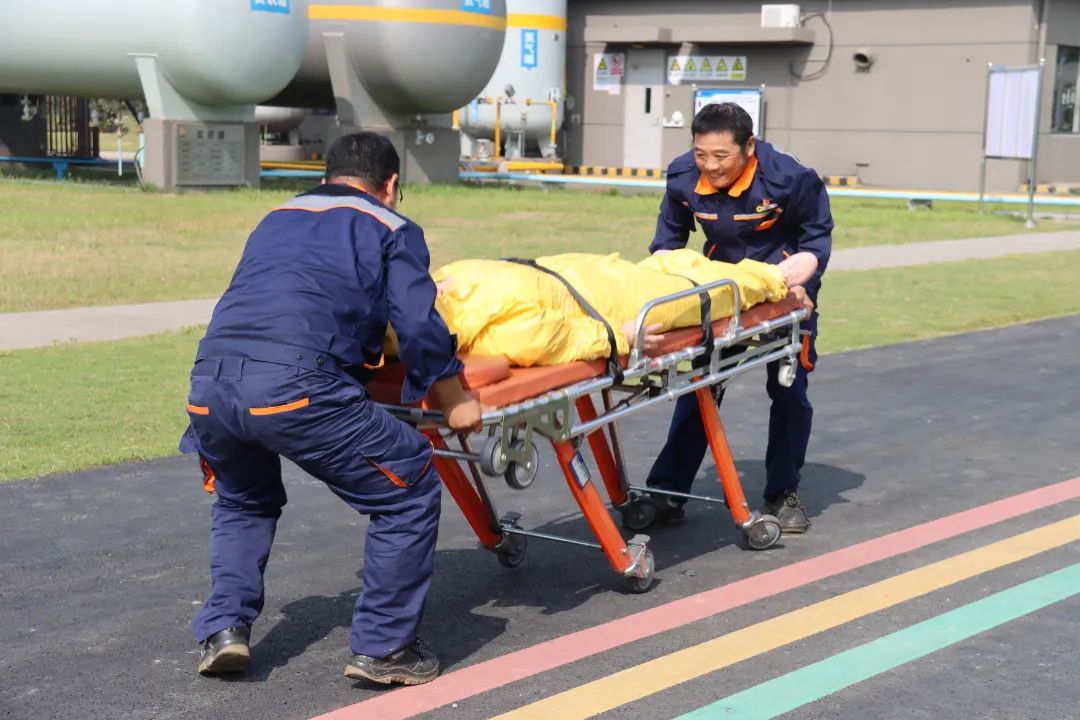 "擔架急救"在應急救援體系中占據著舉足輕重的地位,同樣,它也是我公司本年度新增的兩項應急能力考核項目之一。員工們兩兩組隊,隨著"開始"指令的下達,即刻進入考試狀態:飛奔至模擬傷員所在地,遵循“傷員腳朝前,頭朝后”的原則,“快”“準”“穩”轉移傷員,確保擔架平穩抵達終點。該項目進一步增強了員工之間的溝通與協作能力。