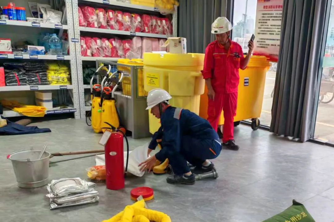 “應急物資保障”作為本年度新增的應急考核項目,其目的在于全面評估員工的觀察力與化學知識底蘊。考核中,員工需隨機從“苯乙烯”“瀝青”“丙酸”“工業油脂”等四類危險化學品中抽取考核內容,一人迅速判斷并傳遞所需物資,協助另一人運送至指定區域。此項考核檢驗了員工對危險化學品特性的掌握。