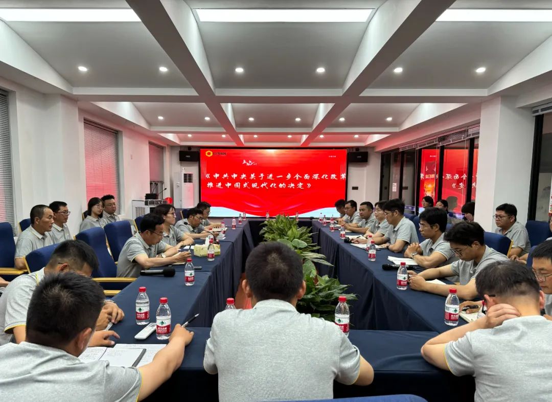會議首先傳達學習了《中國共產黨第二十屆中央委員會第三次全體會議公報》和《中共中央關于進一步全面深化改革、推進中國式現代化的決定》等重要文件精神。