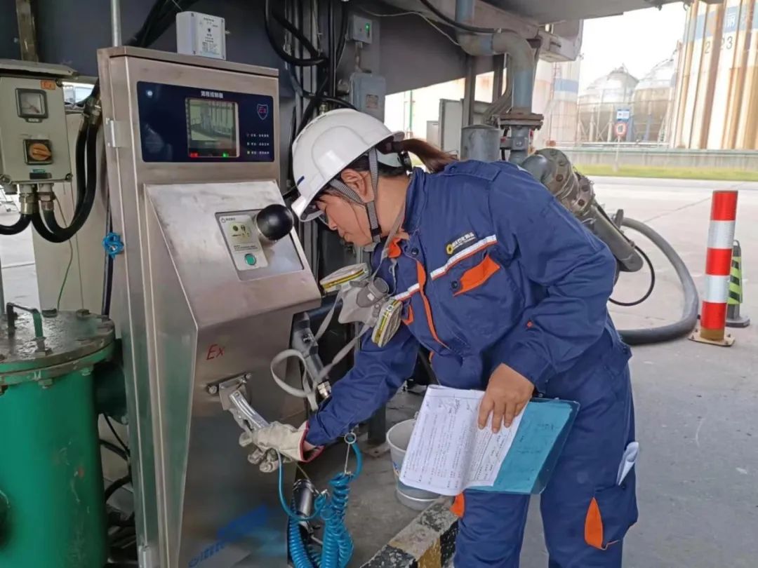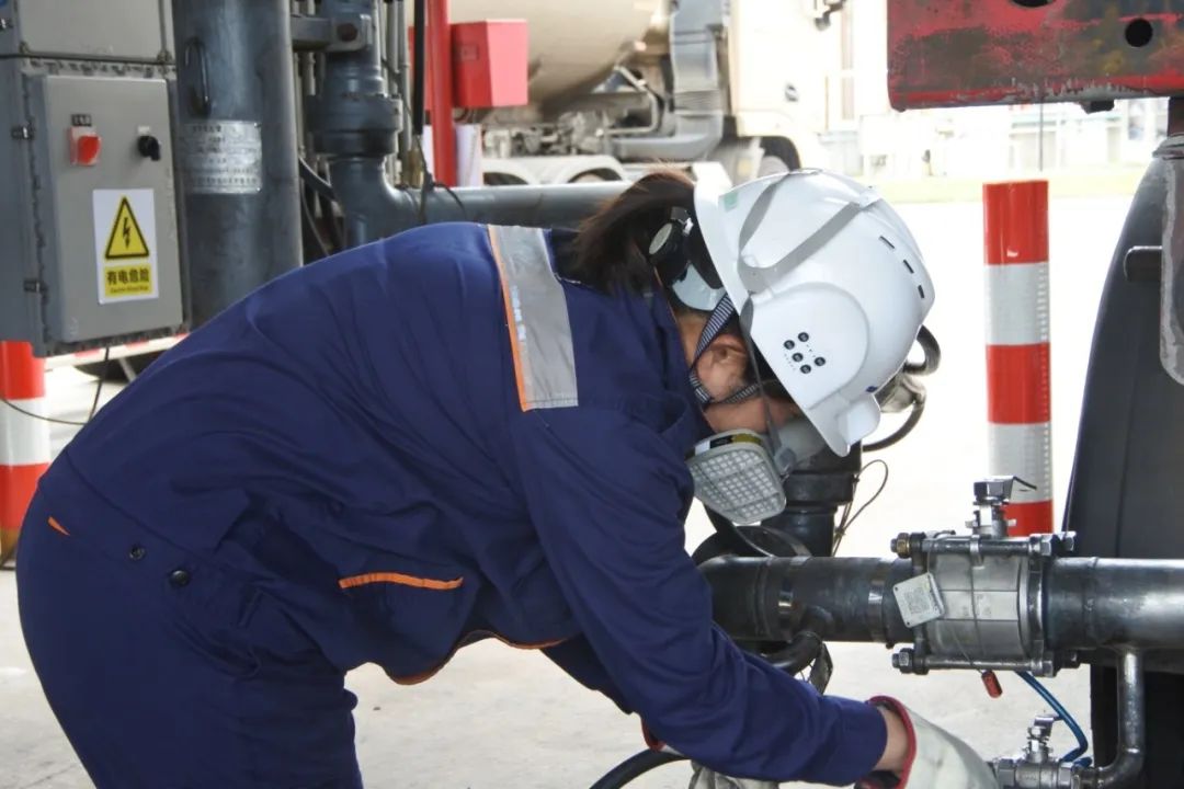 發車現場,發車員們全副武裝,在熱浪的包圍中,以冷靜的頭腦和精準的判斷力,對車輛閥門的法蘭面、鶴管口等關鍵部位進行全面而嚴格的檢查。汗水浸透了衣背,他們卻絲毫未減嚴謹的態度,依舊高效安全地完成每車裝卸作業,展現了專業素養,更傳遞出了對工作的熱愛和對責任的擔當。