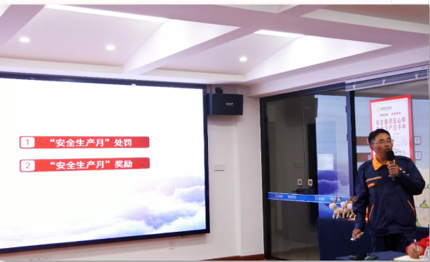常務副總經理黃德華就“安全生產月”獎懲情況進行通報。