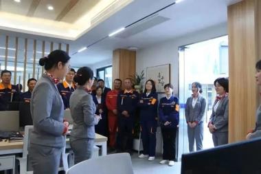 隨后,參觀人員對貨管部客服中心、司機(jī)休息區(qū)進(jìn)行參觀交流,貨管部客服專員劉欣對無人過磅、自助開票系統(tǒng)、體系文件等做了詳細(xì)解說。