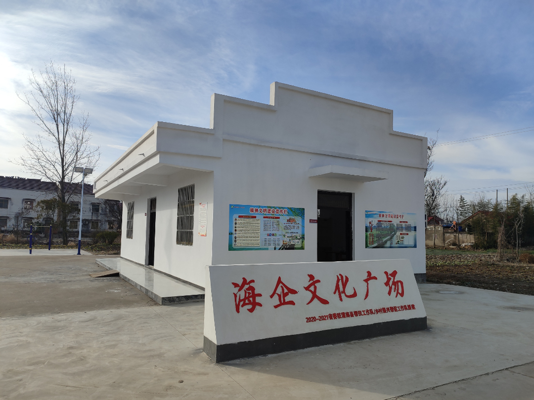 為認真貫徹落實江蘇省委組織部和海企集團黨委關于“萬企聯萬村 共走振興路”行動的各項決策部署,2021年,麗天碼頭黨支部積極發揮國企優勢,履行社會責任,在集團黨委指導下,負責捐建灌南縣北陳集鎮王口村海企文化廣場建筑改造提檔項目,并于2022年1月13日,派代表參加該項目驗收、捐贈儀式。