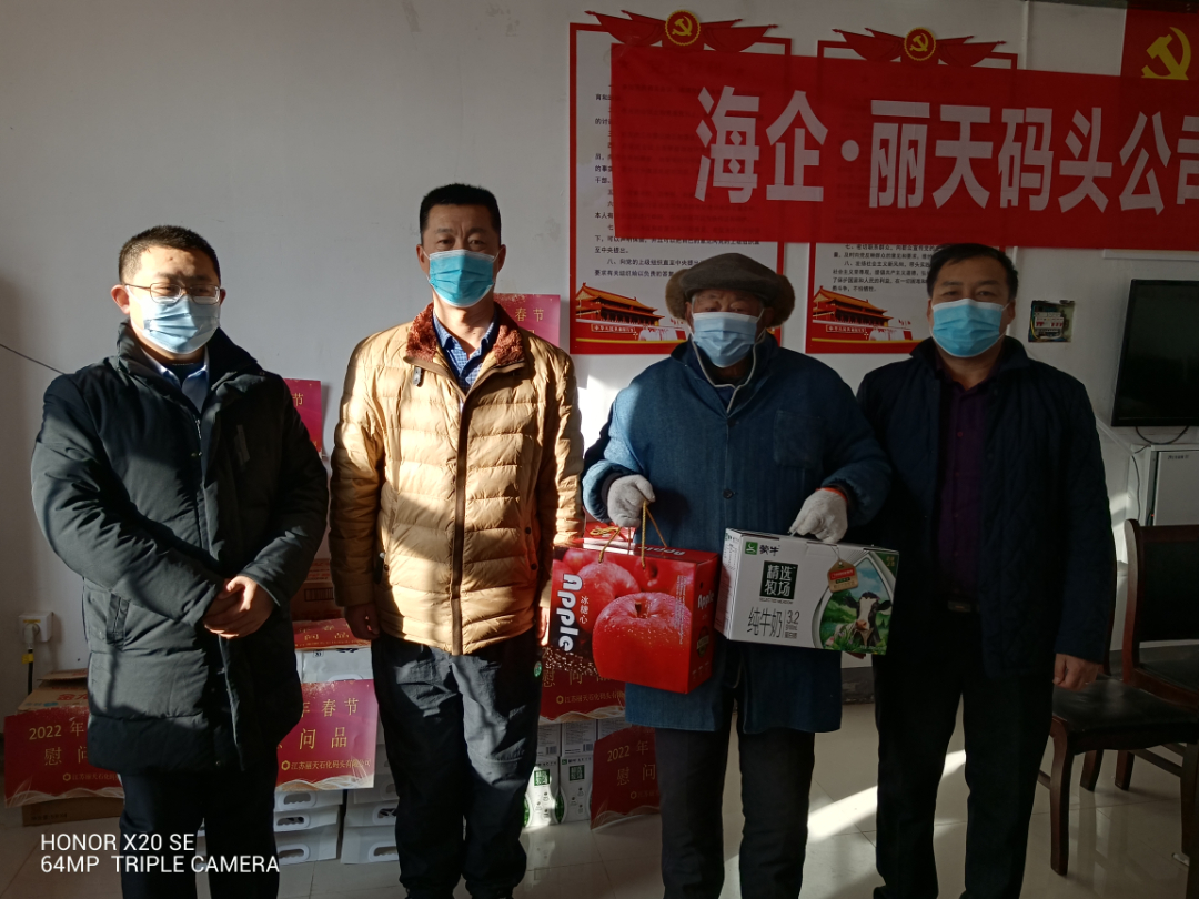 新春佳節即將到來,為深入履行國企擔當,扎實踐行“我為群眾辦實事”實踐活動和“兩在兩同”建新功行動。在項目驗收之際,麗天碼頭黨支部代表和工會主席在王口村黨支部的帶領下,準備了大米、豆油、牛奶和蘋果等實用生活物資,走訪慰問了當地的老黨員、老軍人和低保戶,并與他們面對面談心、心貼心交流,詳細了解他們的生活情況和幫扶需求,給他們帶去了麗天碼頭的愛心與關懷,送上了美好的新春祝福。