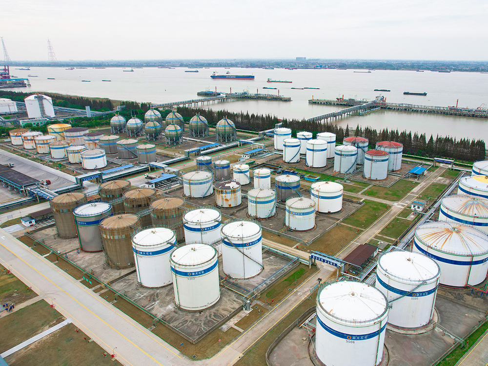6.There are 10 dome roof tanks of 3,000 cubic meters in the sixth area for storing petrochemical products such as alcohols and benzene.