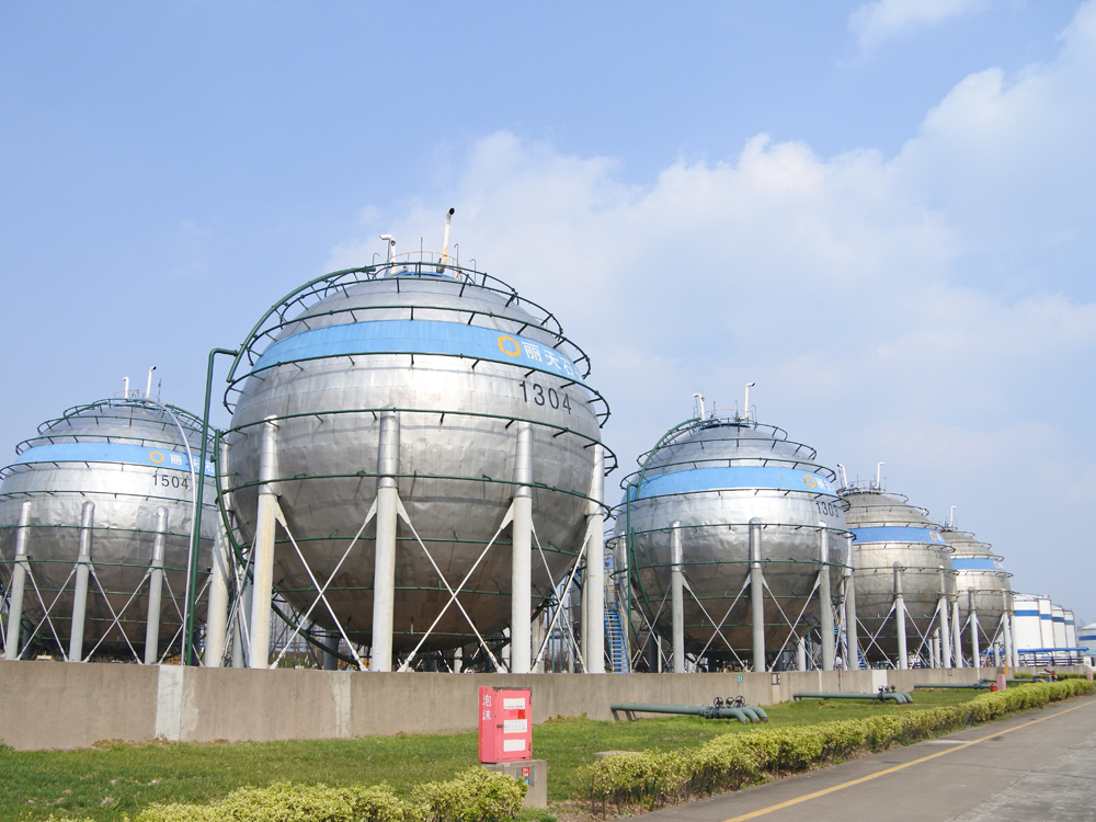 1.Sphere Tank Field: there are eight spherical tanks, four 5,000 cubic meters spherical tanks and four 3,000 cubic meters spherical tanks, which can store chemical products such as propylene oxide, butadiene, C4, 1-butene and so on.